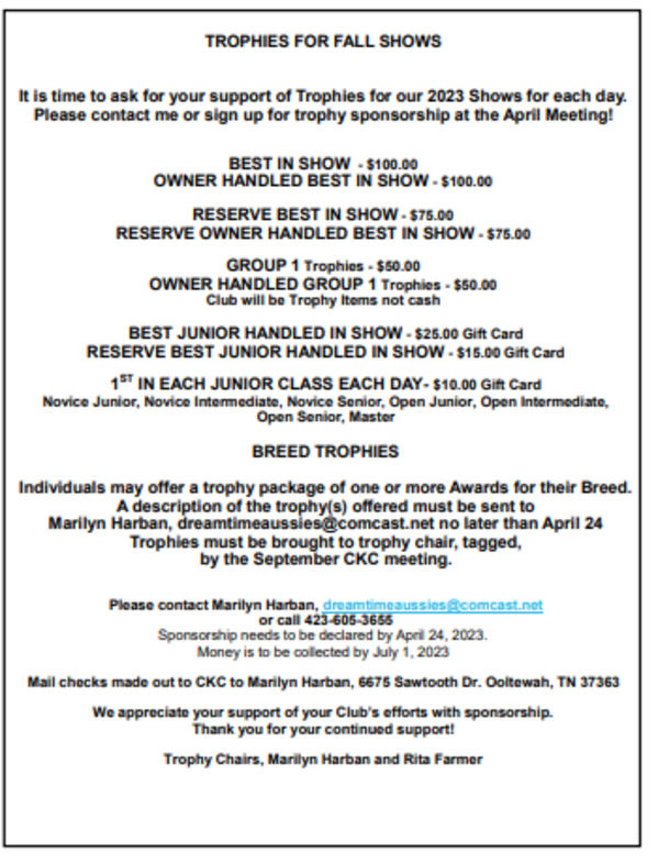 Chattanooga Kennel Club Shows Sept. 13th and 14th